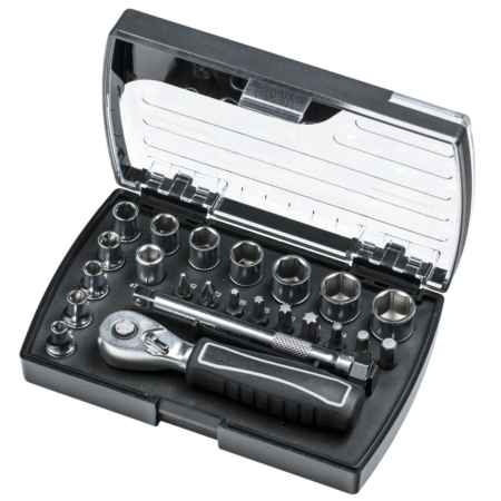 • 1/4″ Topnøglesæt i kompakt plastæske