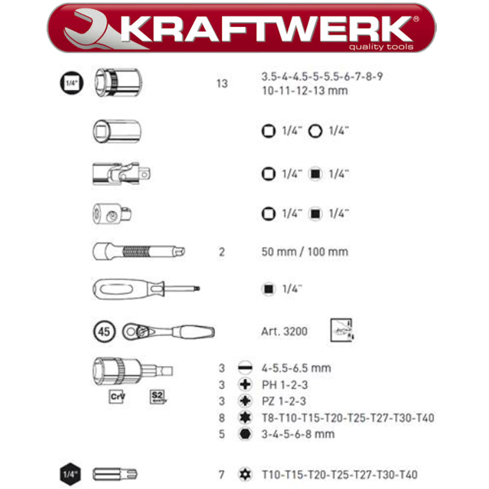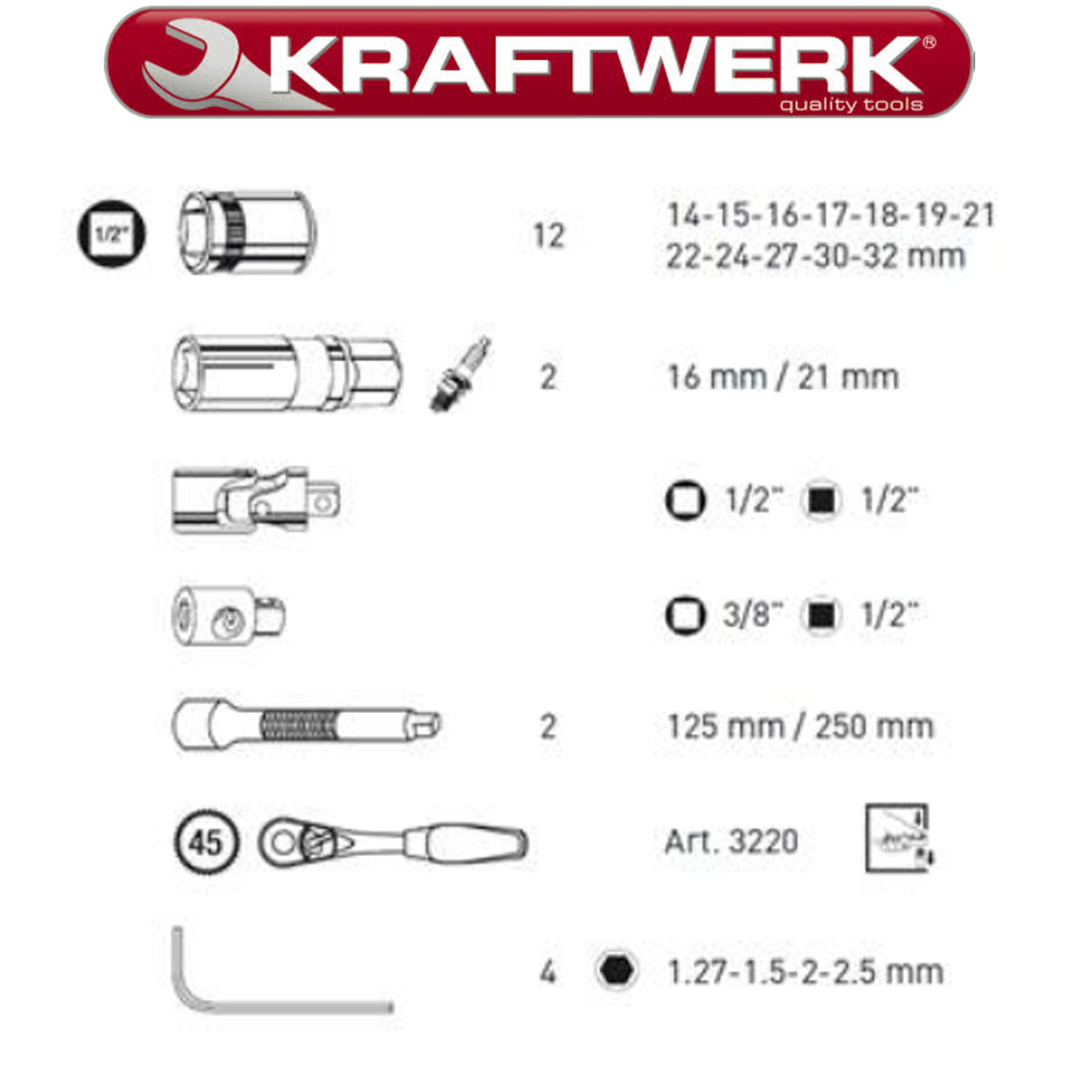 Kraftwerk 1/4″ + 1/2″ Topnøglesæt