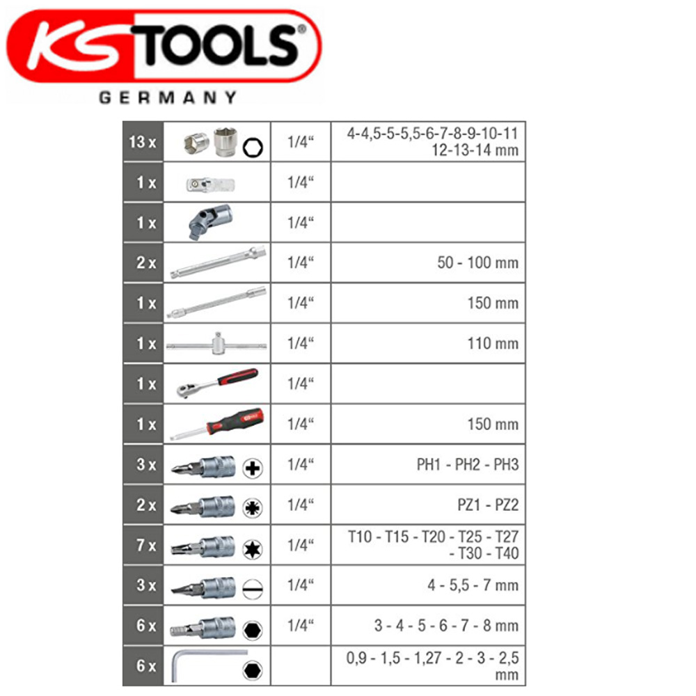 Adaptorsæt satineret til topnøgle 7 dele