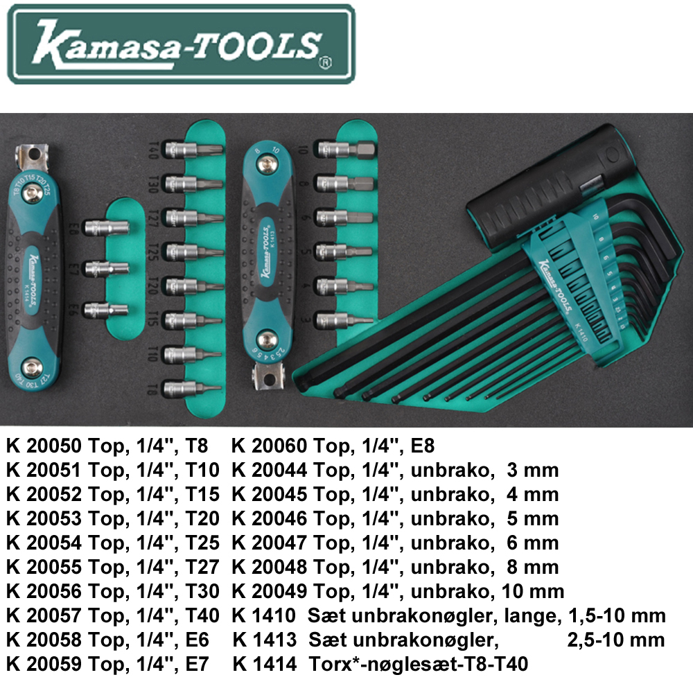 K 20002 T-håndtag, 1/4″, 115 mm K 20020 Top, 1/4″, 10 mm