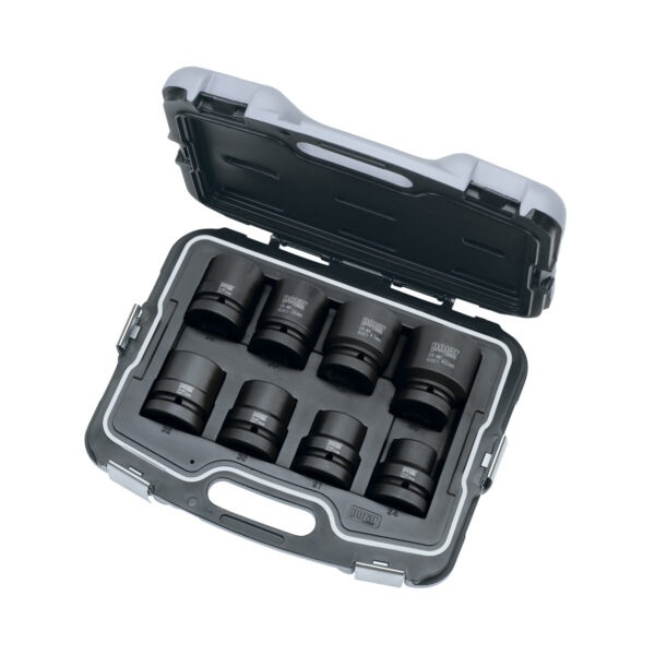 De 8 slagtoppe i sættet giver en bred dækningsgrad, så du har de mest brugte størrelser samlet ét sted — fra mindre 24 mm møtrikker til større 46 mm bolte. Den sekskantede (hex) profil sikrer god kontakt med møtrikker og bolte, hvilket forbedrer momentoverførsel og reducerer risikoen for afrundede hjørner under hård belastning med slagværktøj.