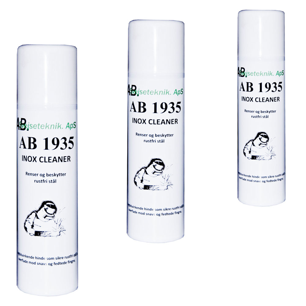 AB 1935 INOX CLEANER er meget drøjt i brug. Undgå unødig overdosering. Spray et tyndt lag på emnet med hurtige bevægelser i en afstand af 15-20 cm. Aftørres med en tør og fnugfri klud.