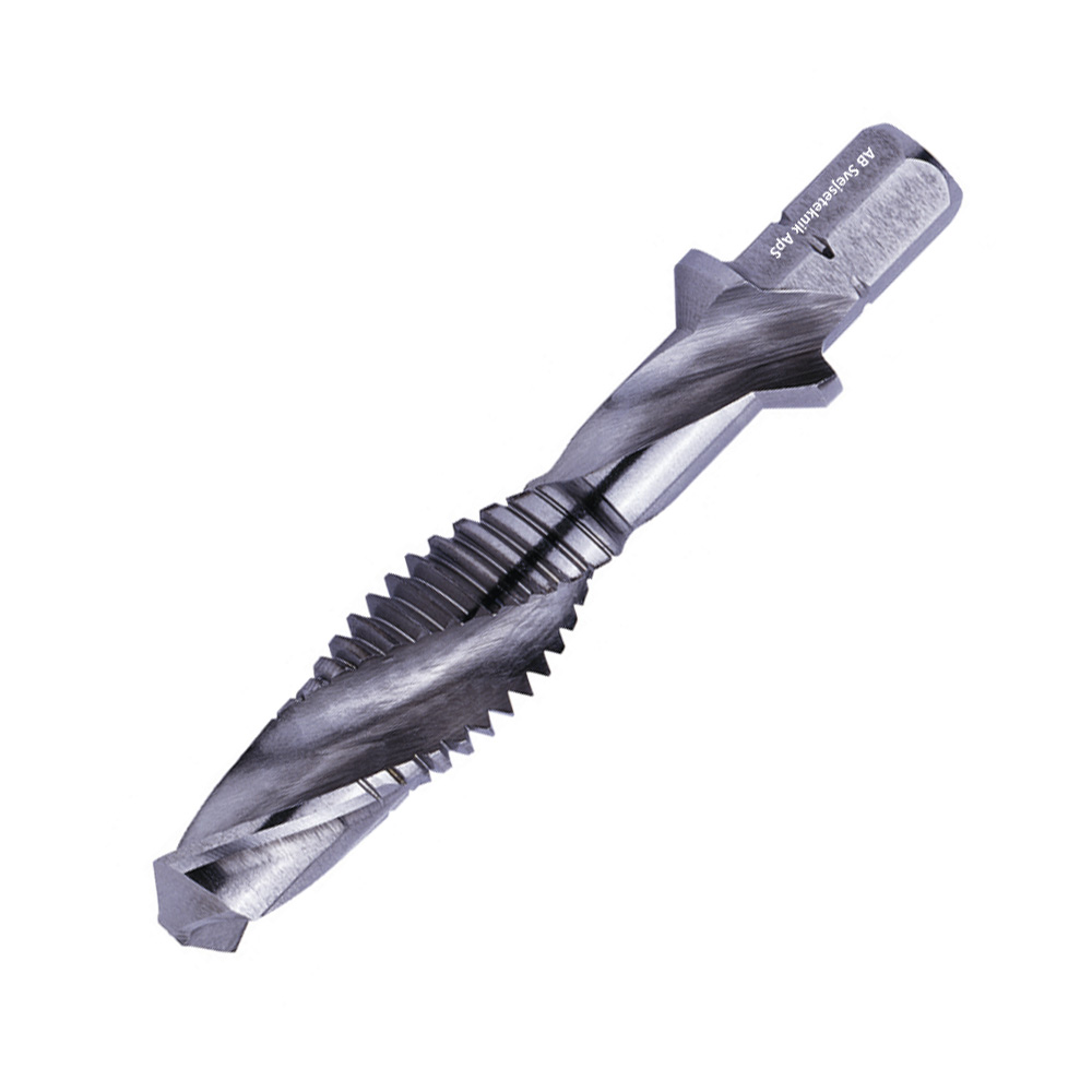 Borer, skærer gevind og forsænker i én arbejdsgang.