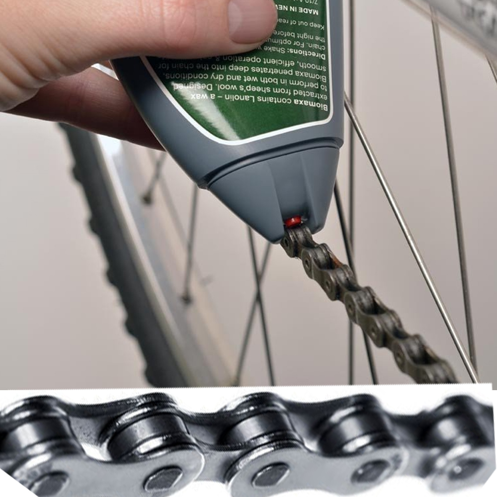 Er Lavet af lanolin (voks udvundet af fåruld), er Biomaxa et produkt fra New Zealand. Påstås at være verdens første cykelspecifikke Kædesmøremiddel højtydende.