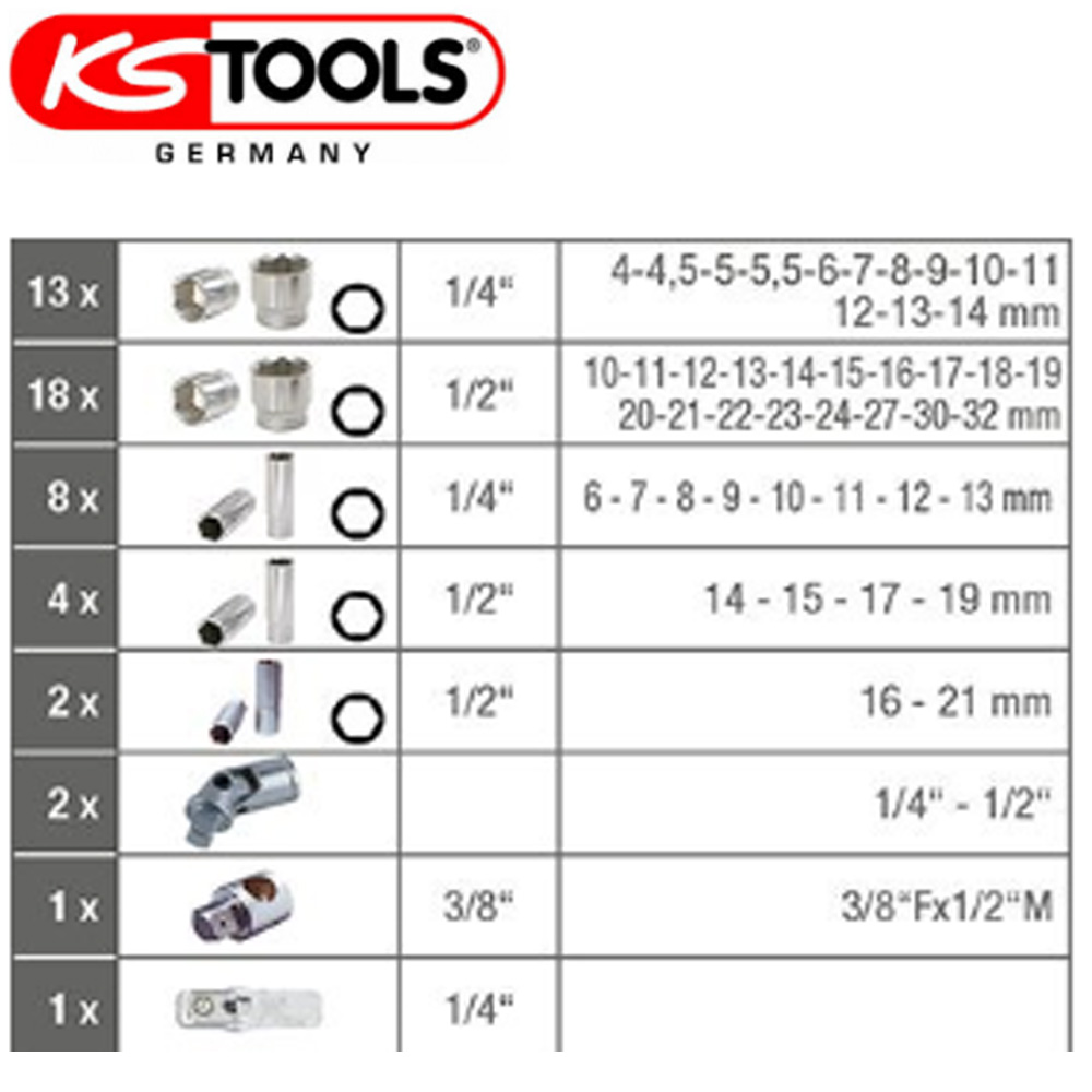 Chromeplus® Topnøglesæt forkromet 1/4″ + 1/2″ 96 Dele.