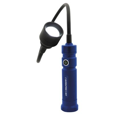 IP54 håndholdt arbejdslampe med flex-arm og fast lyskekegle. Magnetisk base og gen-opladeligt Li-Ion batteri.