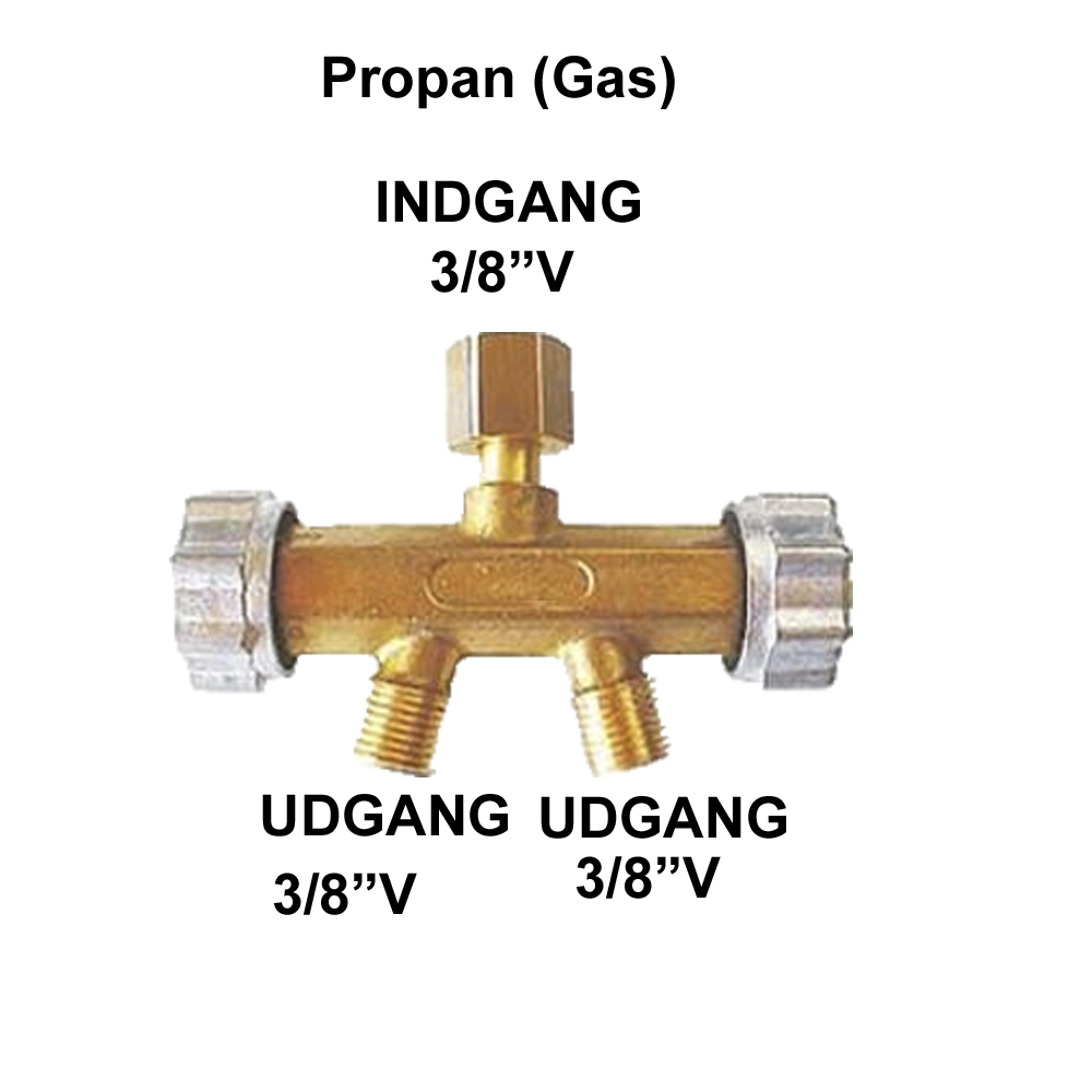 Indgang 3/8 V. Indv .- Udgang 2 x 3/8 V. Udv.