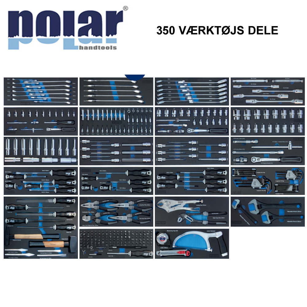Med Polar Tools Easy 8-skuffer værktøjsvogn med 350 værktøjer får du en komplet, professionel og brugervenlig løsning, der sikrer, at du altid har de nødvendige værktøjer lige ved hånden og et organiseret arbejdsområde klar til brug.