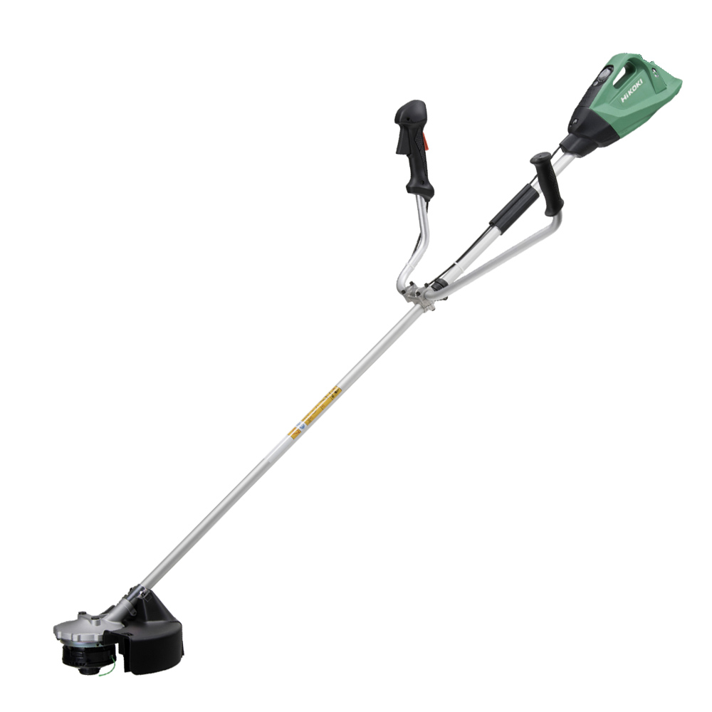 beskyttelsesdæksel, trimmerhoved med nylon trimmertråd, sele og beskyttelsesbriller.