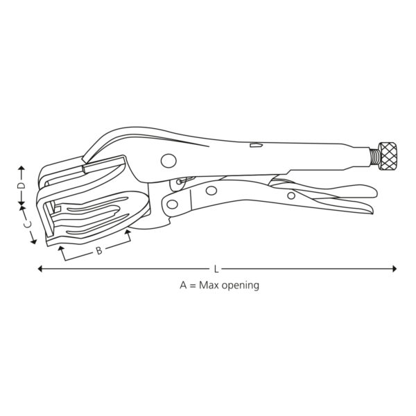 Den robuste konstruktion sikrer lang levetid og modstandsdygtighed ved daglig brug. Kæberne er designet til at give et fast og stabilt greb om metalplader og andre emner, hvilket reducerer risikoen for bevægelse under arbejdet. Dette bidrager til bedre kontrol og mere præcise resultater.