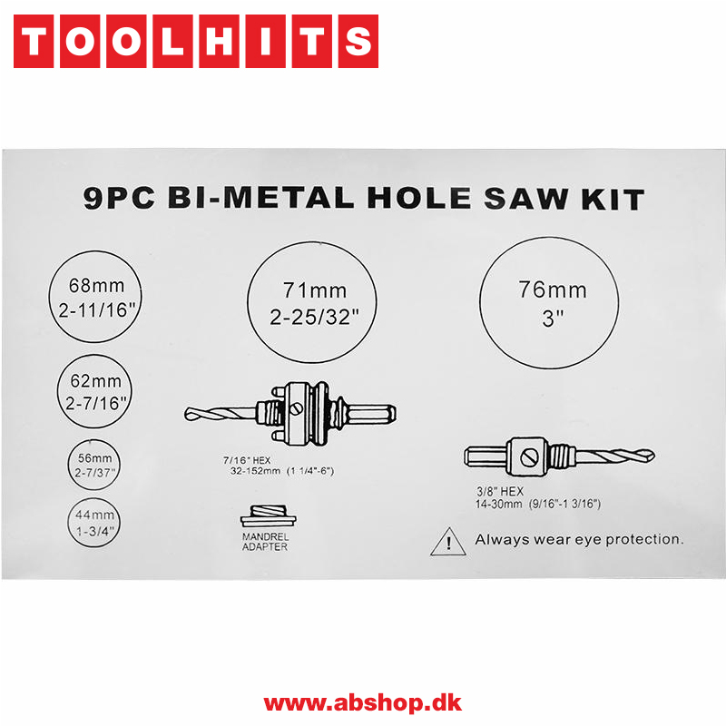 Hulsavesæt Ø44-76 mm HSS Bi-Metal M42 med 8% cobolt (9 dele)