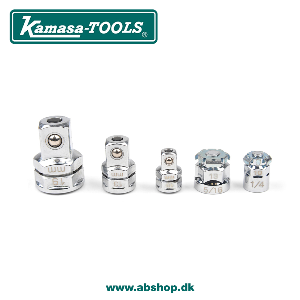 Tilpasser nemt nøgler til meget kompakte top- eller bitværktøjer. Adapteren til topværktøj har en forsænket udløserknap til toppen. Adapterne er i højglanspoleret krom.