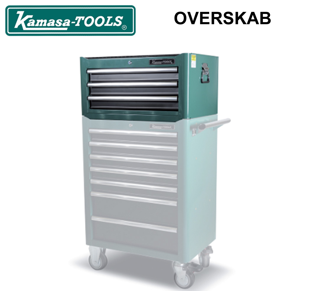 For at undgå risikoen for, at værktøjets vægt får skabet til at vælte forover, kan der kun åbnes én skuffe ad gangen. Alle skuffer låses med et centralt låsesystem. Alle skuffer har også en transportlås, når de er lukket, så kabinettet kan flyttes, uden at skufferne kører ud. Kraftig gummimåtte på bordpladen og tyndere måtter i alle skuffer. Alle skuffer er udholdenheds testede med en belastning på 40 kg i 50.000 cyklusser.