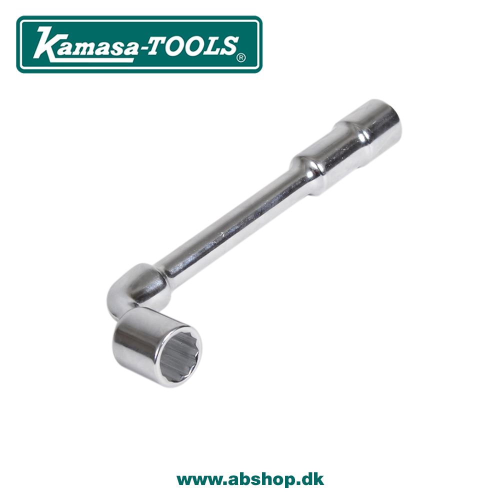 Rørnøgler i blankpoleret krom, der passer til møtrikker med langt gevind. Sekskanttop i den lange ende og en gennemgående tolvkanttop i den korte.