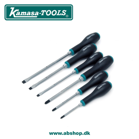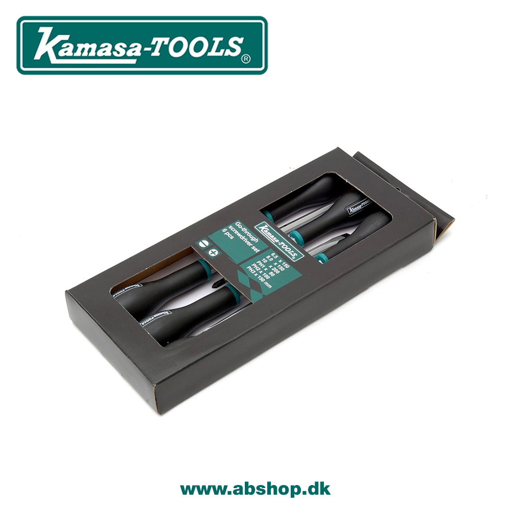 Gennemgående klinger, der kan modstå høj belastning. Skruetrækkerne har også et større sekskantet tilbehør og gummierede håndtag med god bredde, der sikrer maksimal drejekraft. Håndtag med lille diameter foran gør det hurtigt at tilspænde og løsne skruer.