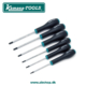 Et sæt med ekstra lange skruetrækkere, der et stort udvalg af Torx-skruer. Lange, gummierede håndtag med god bredde for maksimal drejekraft. Håndtag med lille diameter foran gør det hurtigt at tilspænde og løsne skruer.