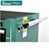 Den store, øverste skuffe har dobbelte skinner For at forhindre, at vægten fra værktøjet får vognen til at vippe forover, kan skufferne kan kun åbnes en af gangen.