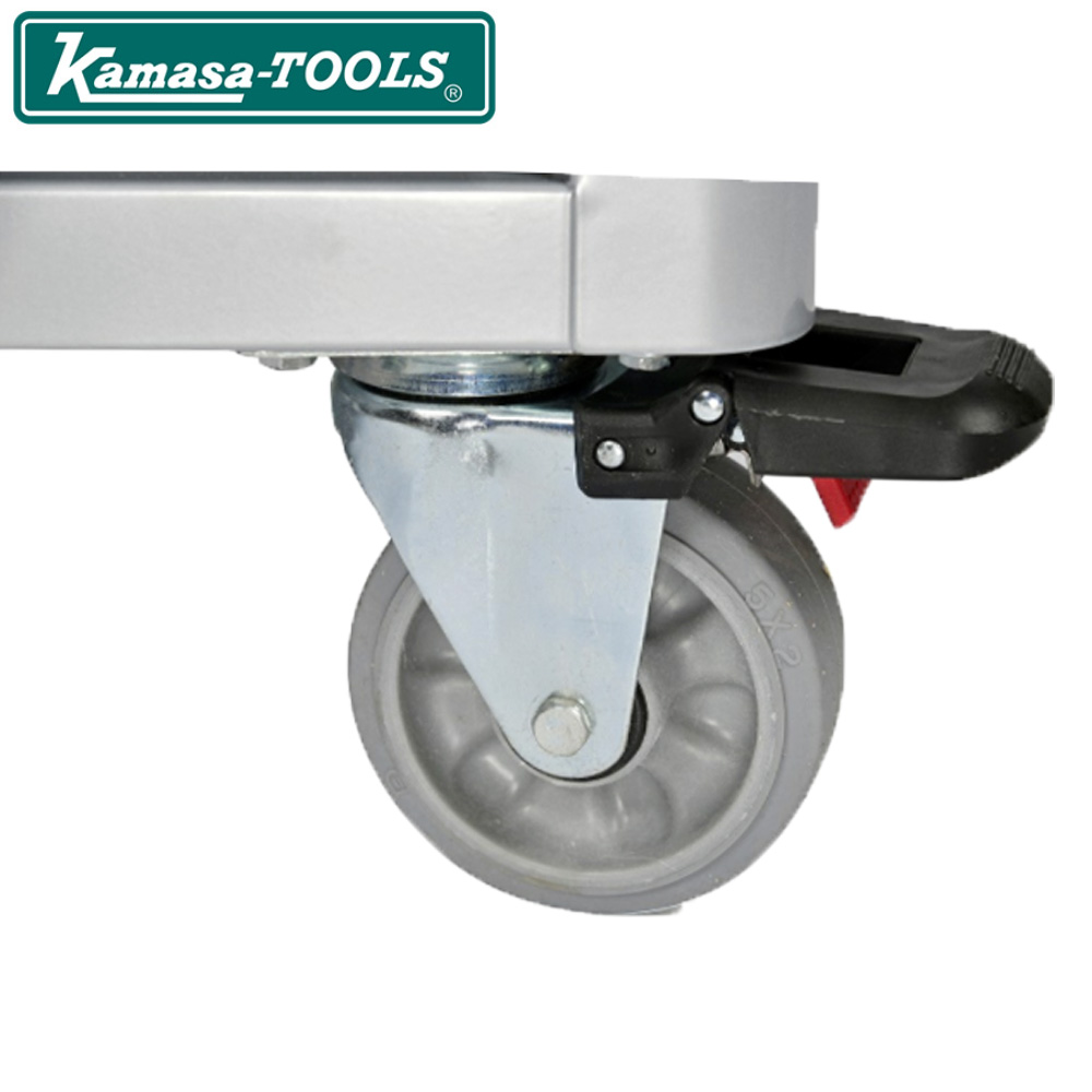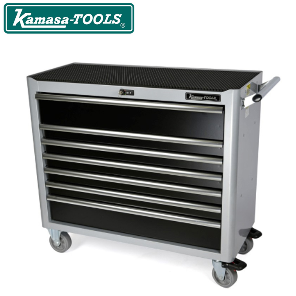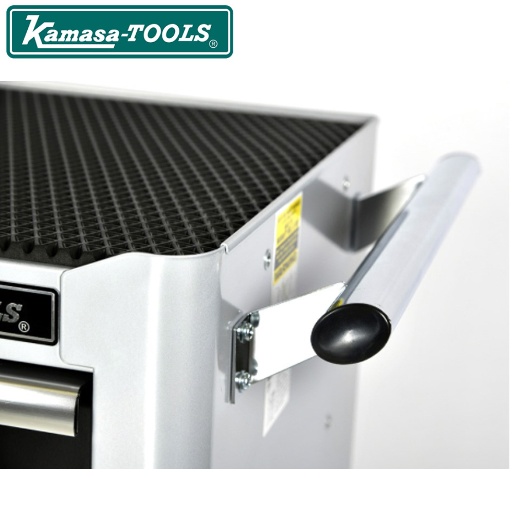 Den store, øverste skuffe har dobbelte skinner For at forhindre, at vægten fra værktøjet får vognen til at vippe forover, kan skufferne kan kun åbnes en af gangen.