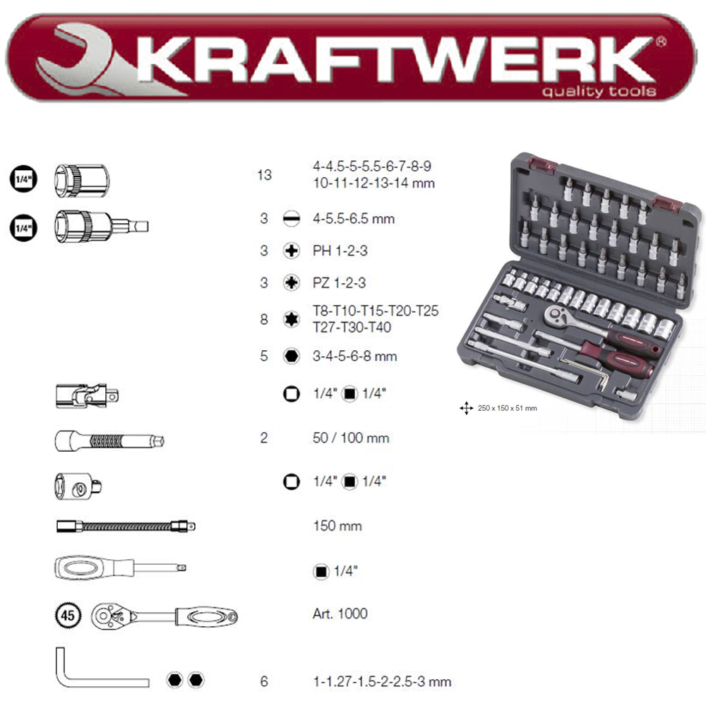 1/4″ Topnøglesæt med Bitz 48 dele
