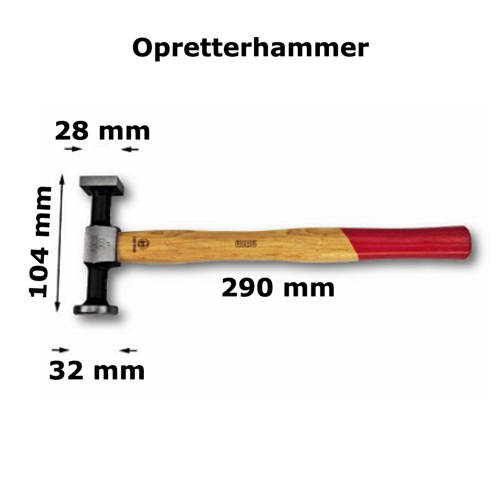 Opretterhammer med karret rund bane og firkantet flad bane