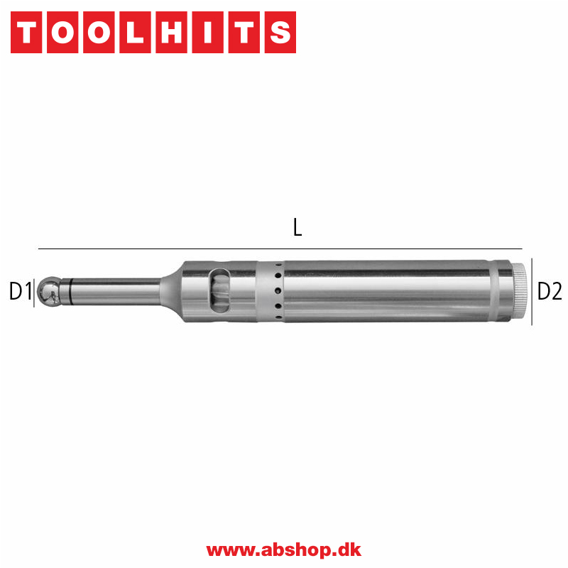 Til hurtig positionering af spindlens, placering i forhold til emnet, målekuglen er monteret med sikkerhedsfjeder som positionerer kuglen præcist tilbage til udgangspunktet, anvendes med stillestående spindel, slebet på alle flader. Ø10 mm