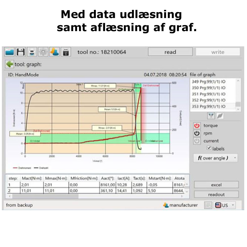 • Min. 150.000 stramme resultater med strøm / vinkel gemmes i værktøjet