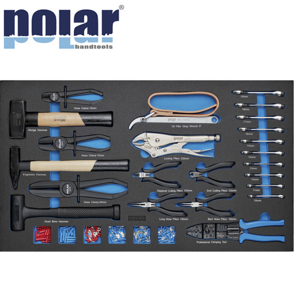 Polar Hamre, tænger og nøgle sæt til værktøjsvogn Mega 1000 1129 dele