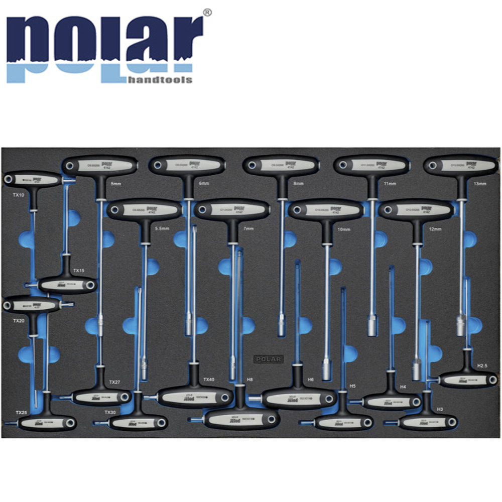Polar Tools T-håndtag skruetrækkere til værktøjsvogn Mega 1000 1151 dele er et omhyggeligt sammensat værktøjssæt designet til at give dig maksimal kontrol og komfort ved arbejde med 6-kant skruer i forskellige størrelser. De ergonomiske T-håndtag gør det nemt at få et godt greb og øge drejningsmomentet, hvilket især er nyttigt ved krævende tætninger og løsninger.