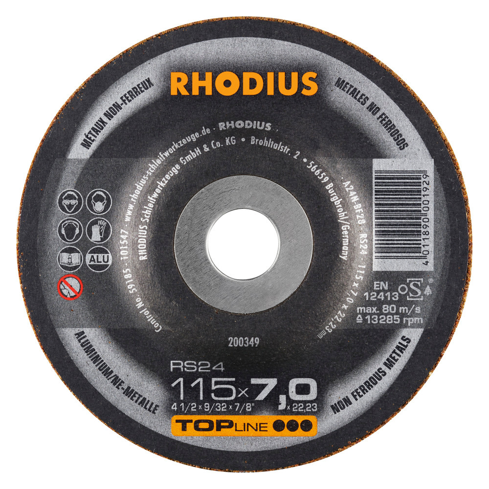 Rhodius specialisten til slibning af alu. RS24 sliber groft med en lang standtid. Specielle fyldstoffer forhindrer skiven i at lukke og muliggør dermed en god og kontinuerlig slibningsproces.
