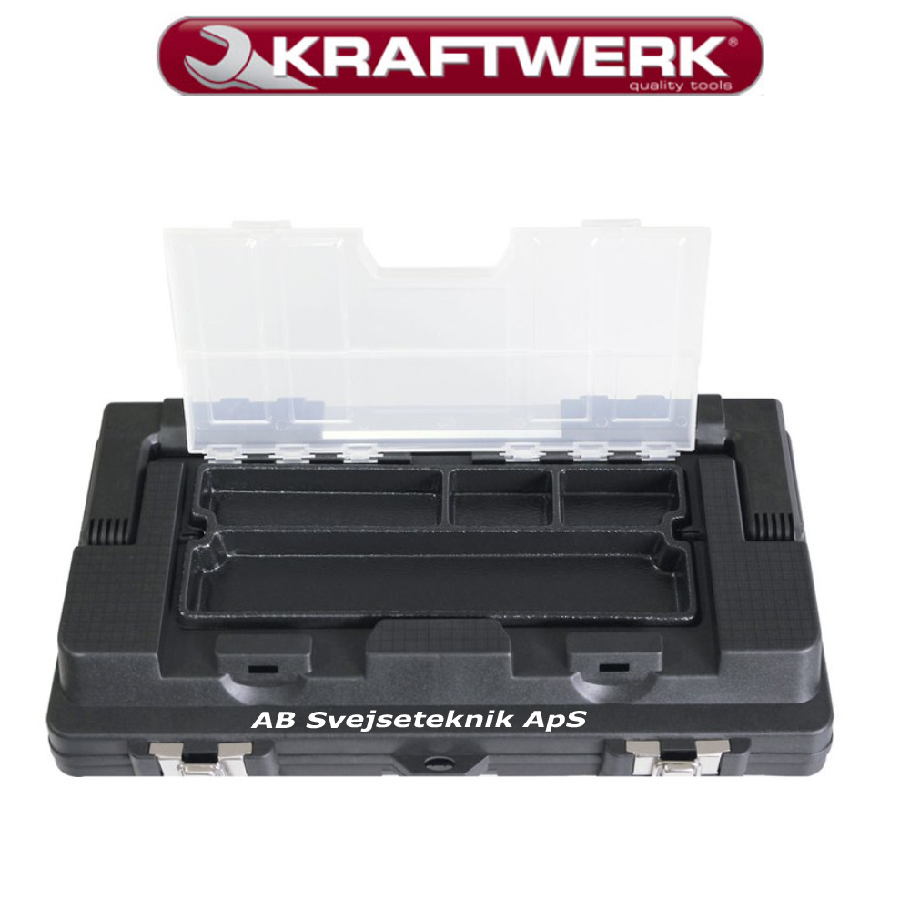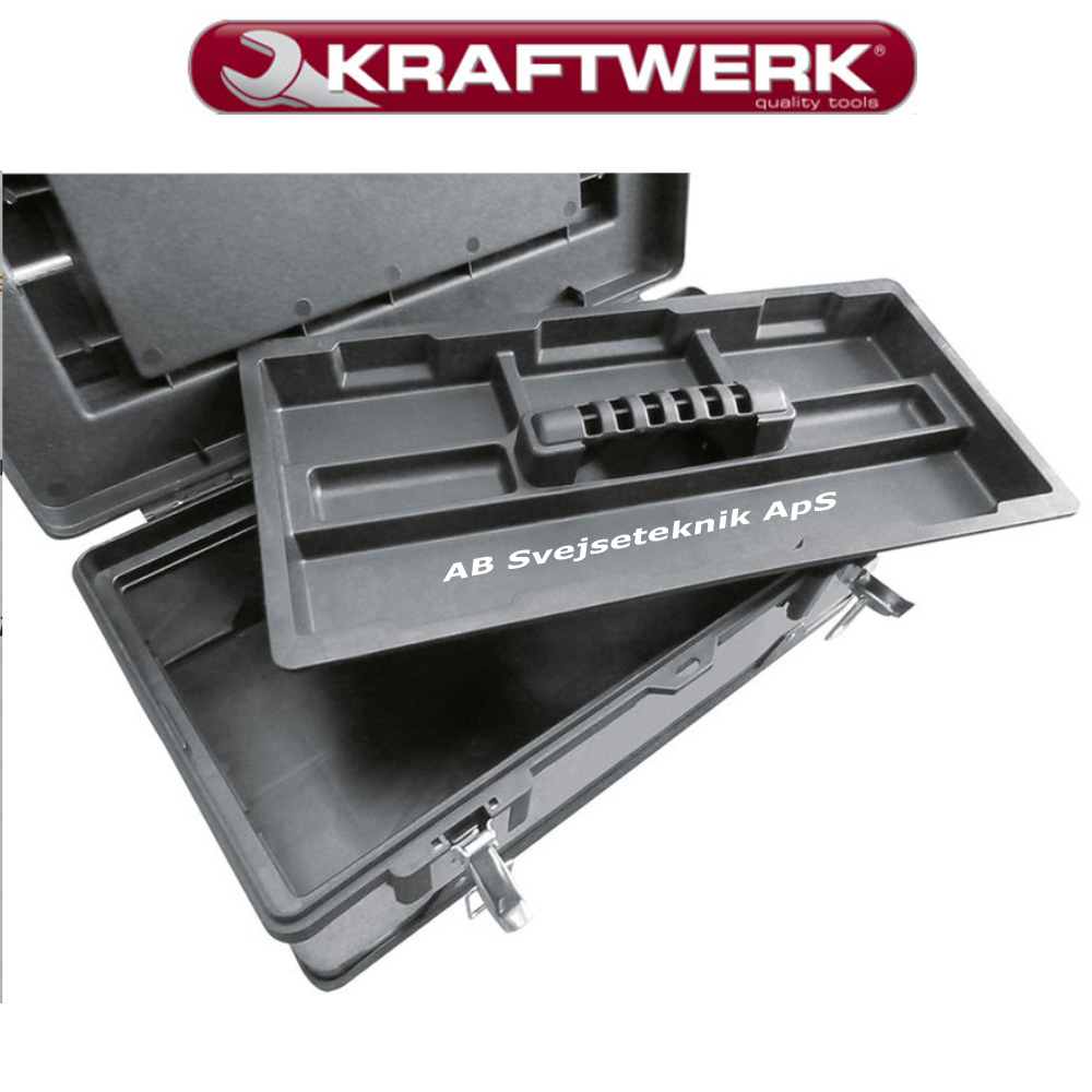 Kombinationen af plast og metal gør værktøjskassen meget robust med mindre vægt end et rent