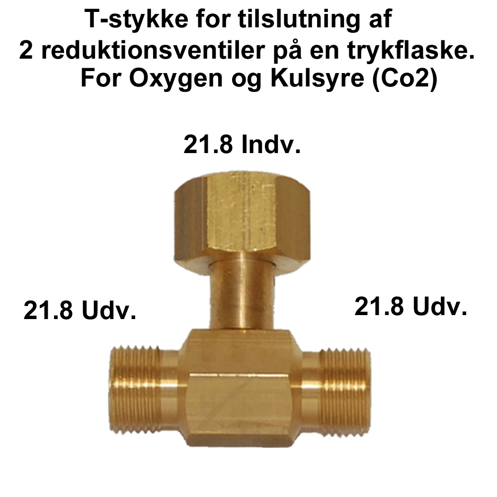 T-stykke for tilslutning af 2 reduktions-ventiler på en trykflaske.