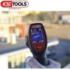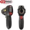 Lille og kompakt Termografiske kamera med UV-lys Kan anvendes inden for byggeri, el- og maskinteknik, bilindustrien mv. Dette produkt måler temperaturen med stor nøjagtighed og gengiver resultaterne ved hjælp af både billeder og data. Den har en farveskærm til sikker evaluering og analyse af temperaturforhold. Skærmen har tre valgbare farvepaletter: varmt jern, regnbue og grå. Måleskalaerne kan skiftes mellem celsius °C og fahrenheit °F. Desuden er det integrerede UV-lys ideelt til at opdage lækager i køle- og klimaanlæg. Denne model har også en justerbar automatisk tænd/sluk-knap og et integreret mikro-USB-stik. Pakken omfatter kamera, et 2 GB micro SD hukommelseskort og 3 AA batterier. Farve: Sort. Materiale: Plastik. Leveres i en robust opbevaringsboks af plastik Pålidelig måling af temperatur og lagring af billeder og data ifm. rapportering Nøjagtige aflæsninger kan tages fra sikrere afstande Farveskærm til sikker evaluering og analyse af temperaturforhold Med laserlys til præcis positionering Integreret LED-lys understøtter arbejde i mørke områder Automatisk slukning. Dato og klokkeslæt kan indstilles til nøjagtig dataindsamling Tænd/sluk-knappen kan også bruges til at beskytte kameraet Nøjagtighed: ± 1,5 % eller 1,5 °C Måleområde: -30 °C til 650 °C (-22 °F til 1202 °F) Emissivitet: 4 forudindstillede værdier, mulighed for brugerjusteringer mellem ε 0,10 og 1,00 Distance til markering-ratio (D:S): 30:1 Måleværdi, opløsning: 0,1 °C / °F Reaktionstid: > 125 ms Spektrumområde: 8 til 14 μmv Laser: Et lasersigtekors omgiver området, der måles Detektor: IR-EX teknologi (integreret IR-arraysensor med CMOS-sensor) Skærmopløsning (H x W): 16.384 pixels (128 x 128) Synsfelt (H x W): 30 ° Øvre område: 650 °C Termisk følsomhed: 150 mK Skærmopdateringshastighed: <9 Hz Farveområder: 3 (jern, regnbue og grå) Billedelagringsformat: Bitmap-format (BMP) med temperatur og emissivitet Skærm: 1,77 "TFT-farveskærm (pixelopløsning 128 x 160) Batterilevetid med laser og lys: 12 timer Arbejdstemperatur: 0 °C til 50 °C (31 F til 122 °F)