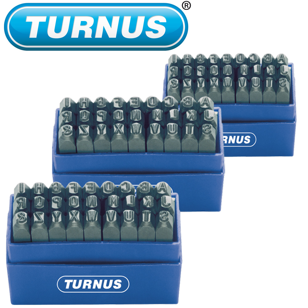 Stålbogstaver til hugning af bogstaver i maskindele mv.