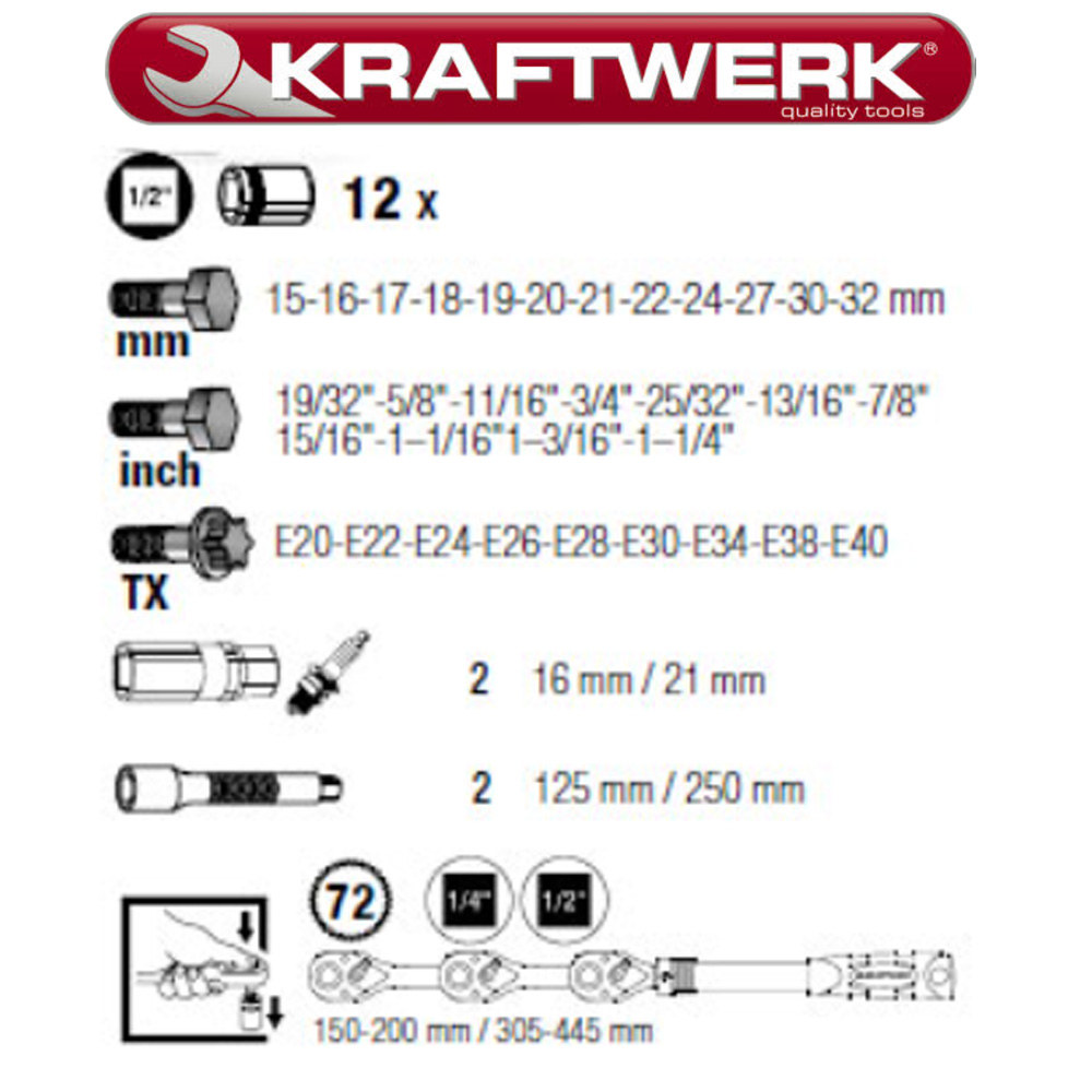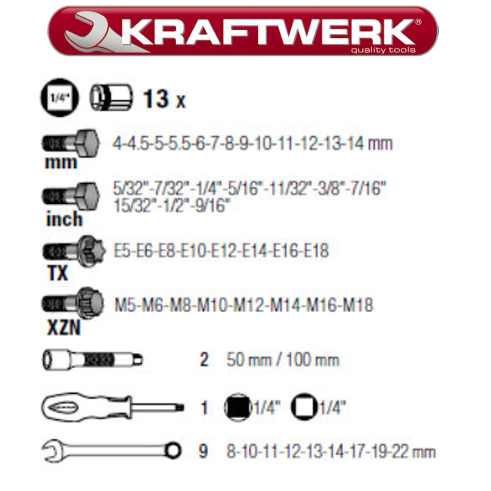 Kraftwerk 2034 metallisk COMBI topnøgle sæt 1/4 + 1/2 tommer 81 stk.