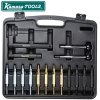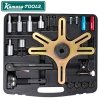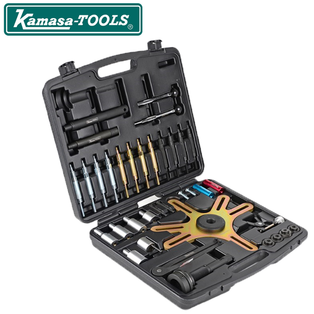 Komplet sæt til demontering og montering af selvjusterende koblinger, SAC (Self Adjusting Clutch). Passer til koblinger med 3-4 fastgørelsespunkter f.eks. VW-Audi, BMW, Mercedes, Volvo, Opel, Renault osv. Værktøjssættet forhindrer, at der opstår skader på SAC-koblingen, og gør det muligt at centrere koblingslamellerne selv på biler uden styrelejer i krumtapakslen. Udskiftning af koblingen uden et SAC-værktøj medfører som oftest, at koblingen bliver deformeret eller beskadiget, så den ikke kobler ordentligt ud eller hugger. En kobling, der er forkert monteret eller deformeret, er defekt og skal udskiftes.