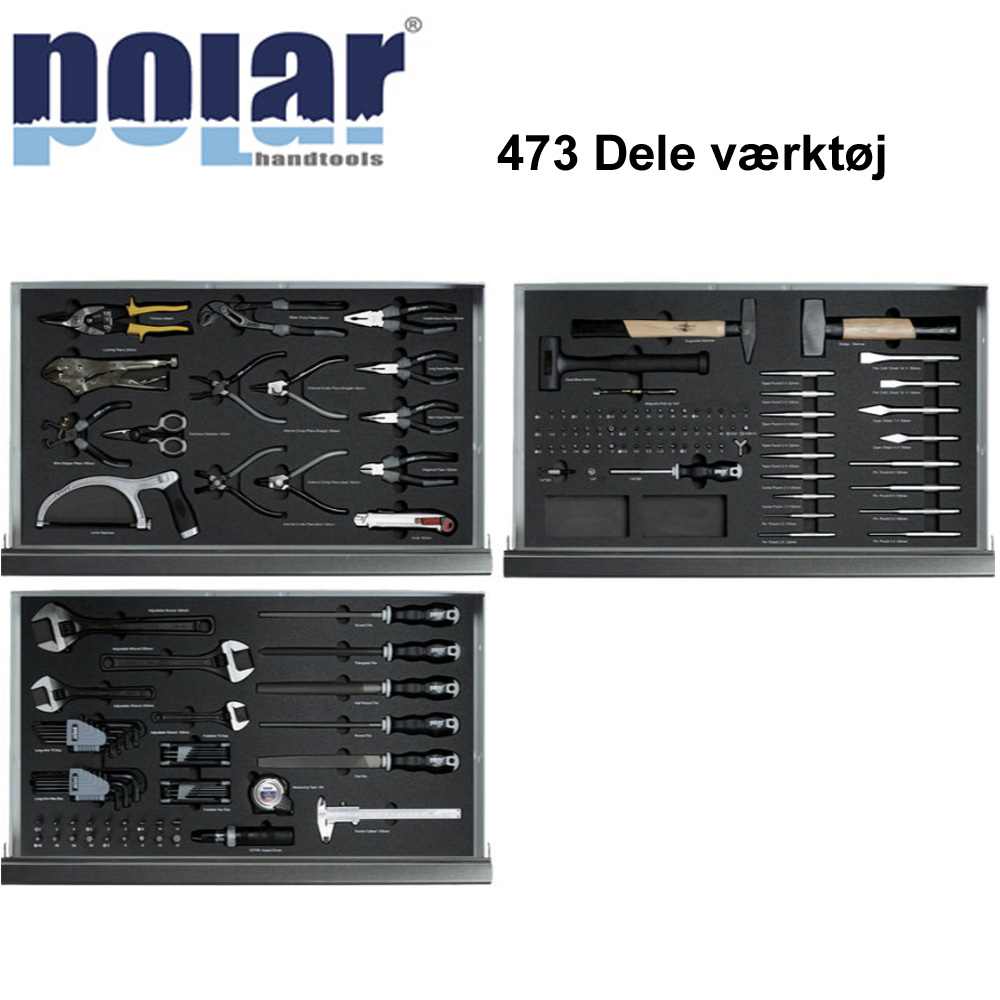 Polar Tools X-Large værktøjsvogn med 473 dele er udviklet til professionelle brugere og krævende gør-det-selv-folk, der ønsker en komplet værkstedsvogn med værktøj klar til brug. Denne X-Large model kombinerer høj opbevaringskapacitet med et omfattende værktøjssæt, der dækker de mest almindelige arbejdsopgaver i værkstedet.