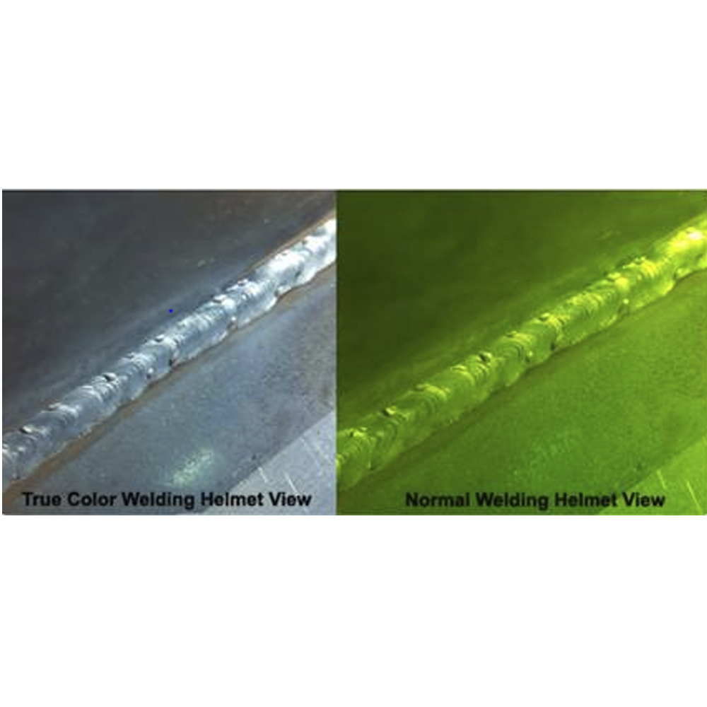Den bliver mørker under svejsningen og muligør et helt spektrum af farver under svejsningen. I modsætning til almindelige svejsehjeme, som kun ses i grønne nuancer.